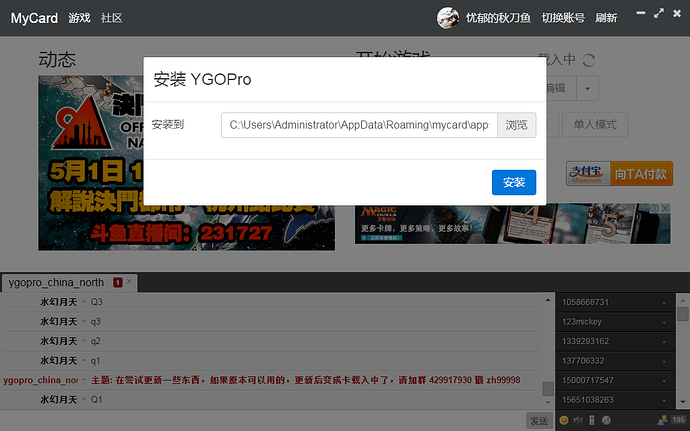 游戏安装。下载后得到一个安装包,双击安装包即可安装萌卡,这点要吐槽一下,萌卡的安装时默认C盘,不能选择不能选择不能选择…重要的事情说三次,咳咳。安装好萌卡后,双击桌面的萌卡图标即可打开萌卡,至于账号注册窝就不说了,这时候它会跳出ygopro的安装目录选项。注意啦,这个是安装你游戏主体的选择,你对战时候打开的界面就是游戏主体界面。记住你的安装目录方便你以后操作~