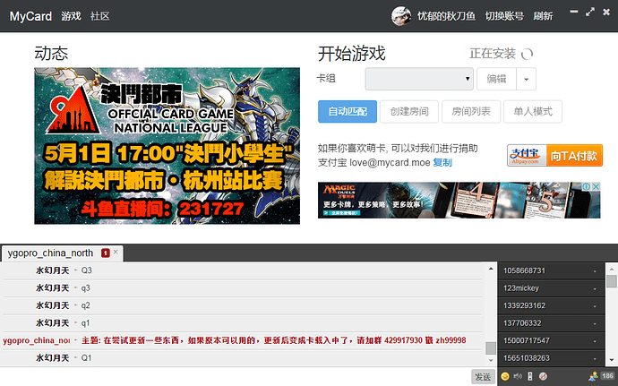 首先,说明一下,萌卡是一个游戏平台,它为游戏主体ygopro提高一个可以方便联机的方式和一个独立服务器。当然目前除了萌卡平台外还有游侠平台和收费的死苏平台,各自的优缺点我就不说了,大伙可以去自个体验OVO 扯得有点远了,回归萌卡~